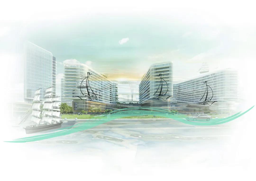 乘風(fēng)破浪、揚帆起航——提取日照海域的帆船輪廓和海浪形態(tài)并將其運用到建筑的形體上,塑造出一幅“揚帆起航”的大氣磅礴的圖畫。具有地域性特色的濱海建筑風(fēng)貌,不僅能夠延續(xù)城市文脈,還可提高城市形象,加深人們對城市的總體印象。